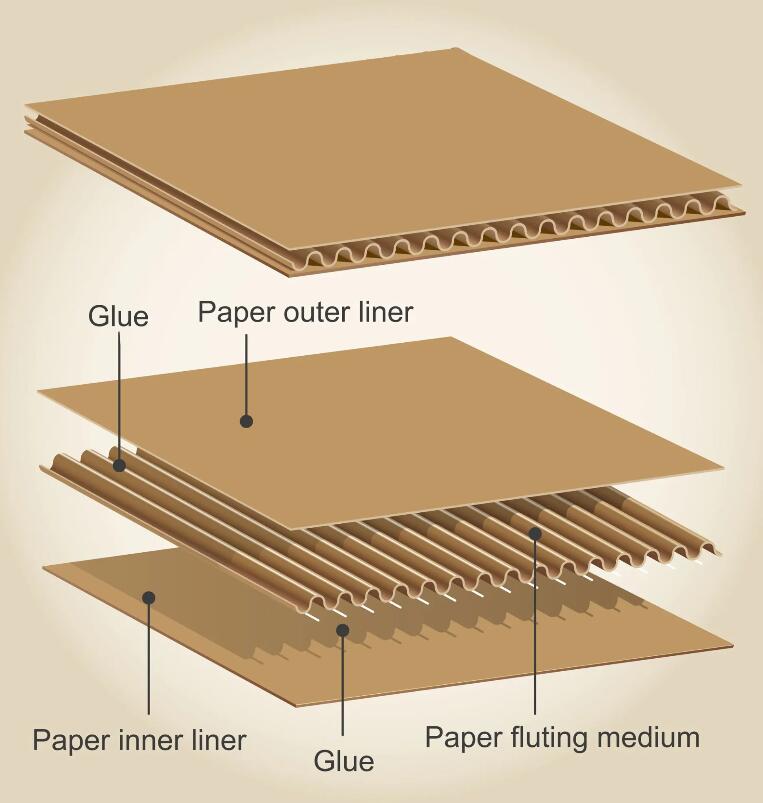 The materail is single wall corrugated paperboard or trouble wall corrugated paperboard.